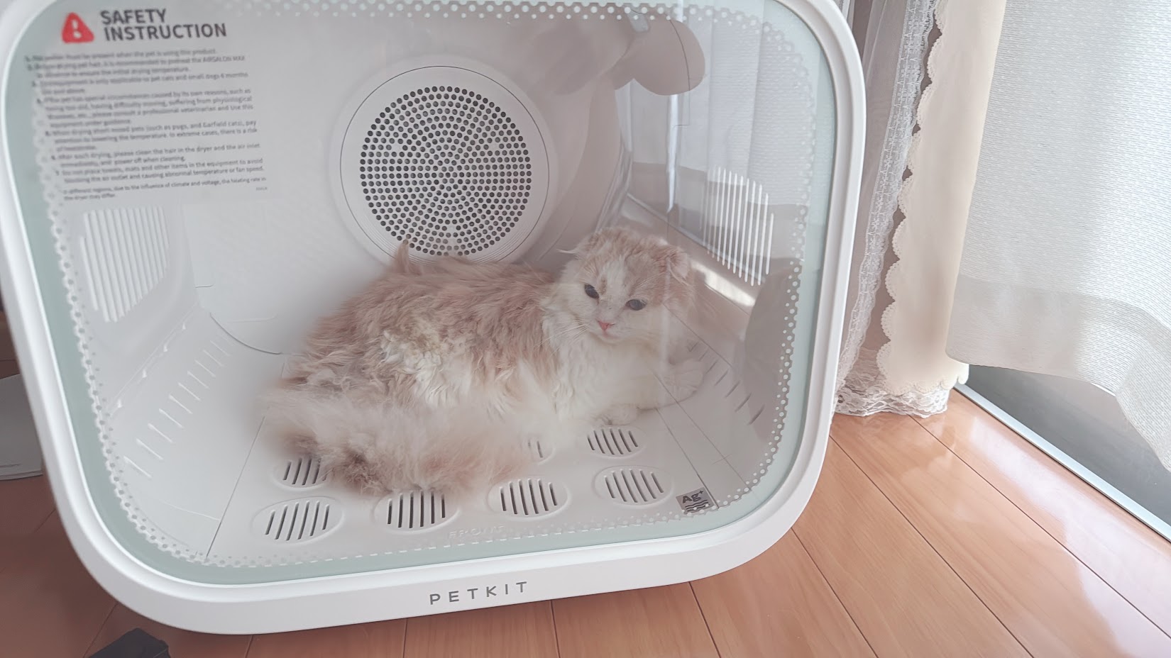 うちの子はスコ長毛種のため毎月のシャンプーが欠かせないのですが、ハンドドライヤーの音と風をあまりに嫌がる姿が不憫で購入を決意。箱に入ってもらうだけで乾かせるので、猫・人間双方のストレスが激減しました。