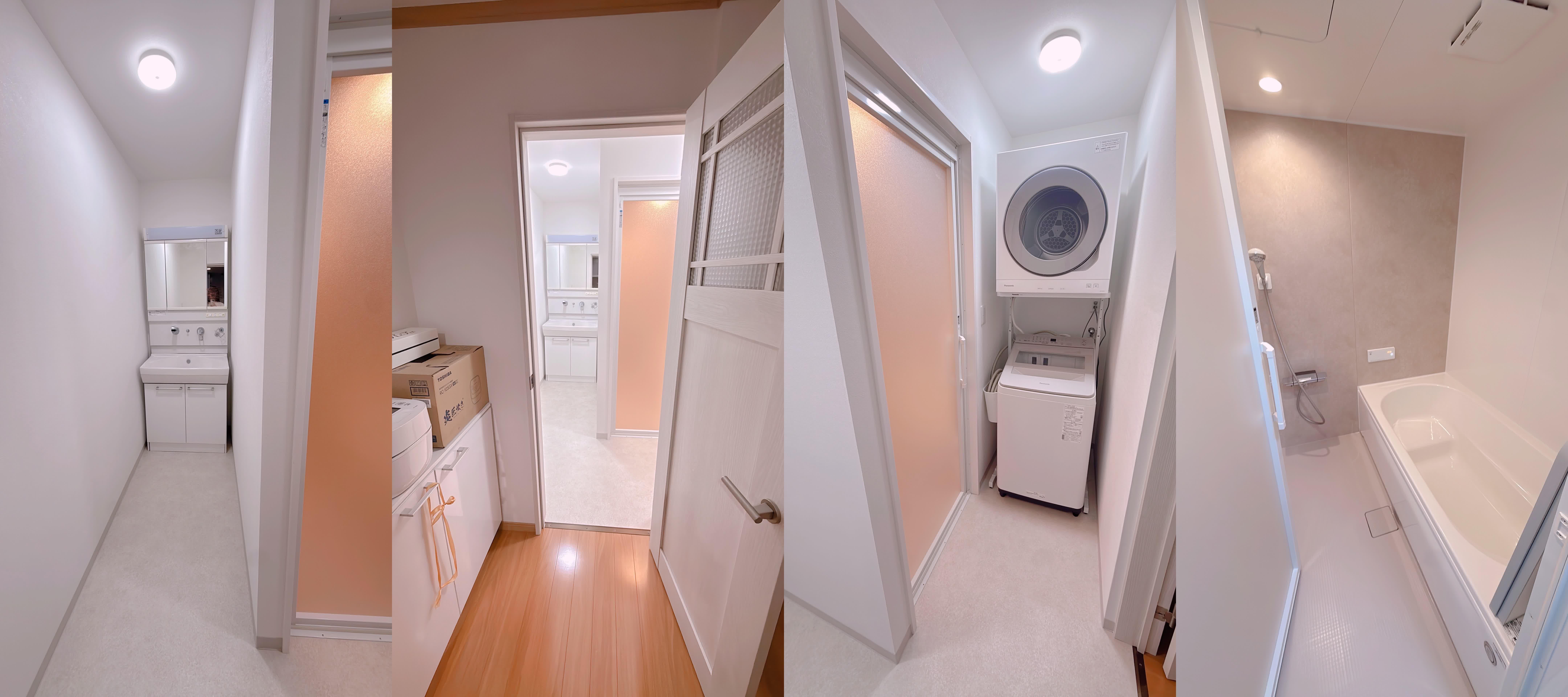 なんと言うことでしょう。元々は換気扇すらなく、壁に穴が開いているだけだった浴室が、綺麗なユニットバスに生まれ変わりました。浴室乾燥機付きです。
