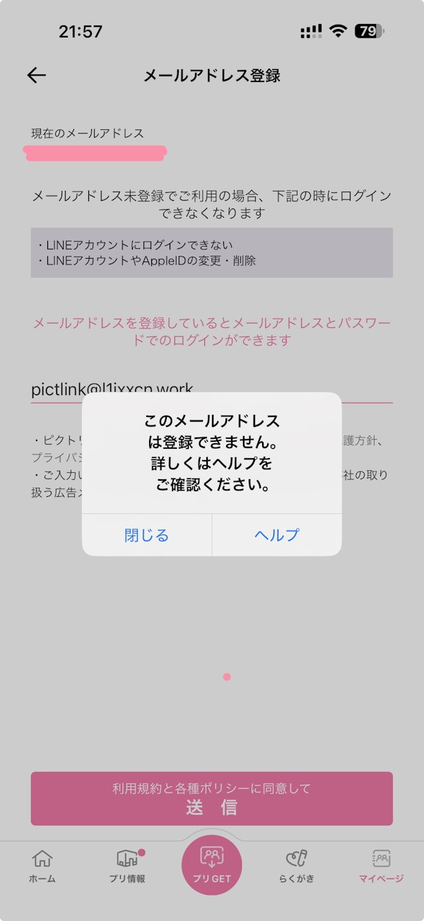 PictLinkのような、特定のドメイン以外からの登録を受け付けない、前時代的で愚かな仕様を持つサービスが未だに存在しますが、icloud.com